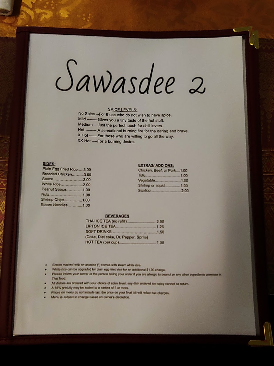 Sawasdee 2 Thai Restaurant Menu (2025 Update)
